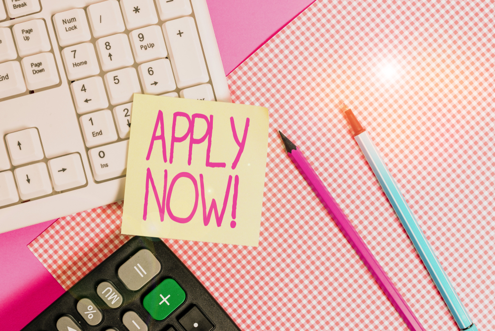 apply now on pink desk
