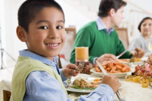 boy at family dinner