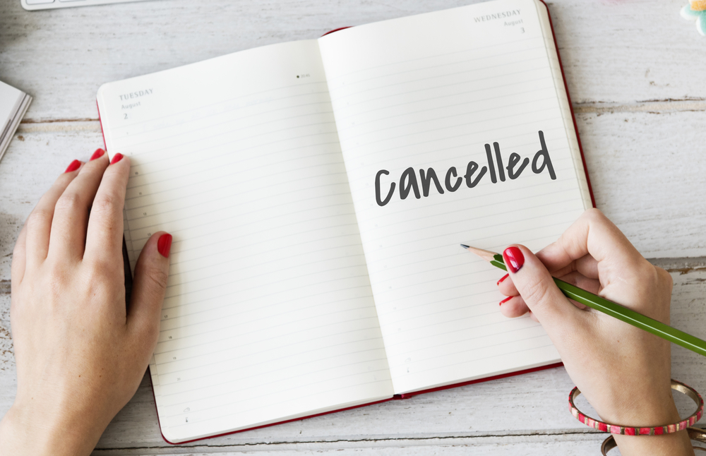 cancelled in calendar with hands