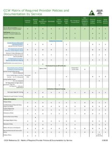 Home » CCW Reference 22 – Matrix of Required Provider Policies & Documentation by Service