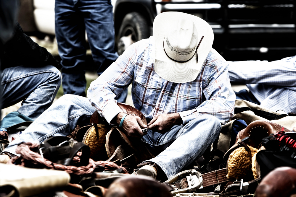 cowboy at a rodeo with gear