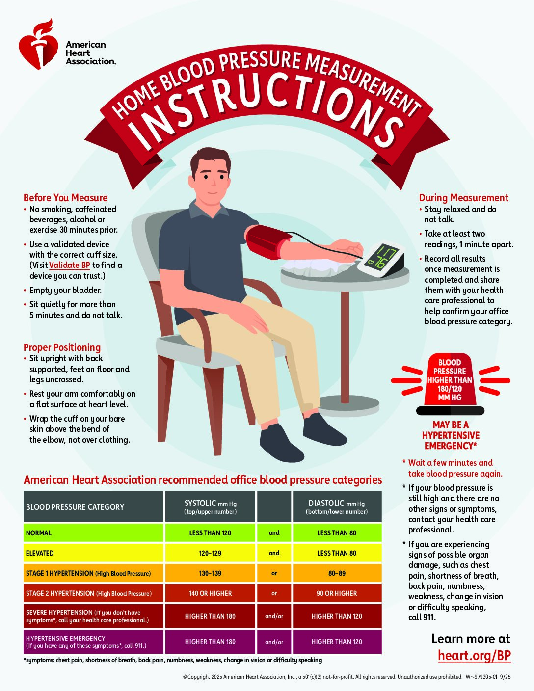 Self-measured blood pressure monitoring (SMBP) involves a patient’s regular use of personal blood pressure monitoring devices to assess and record blood pressure across different points in time outside of a clinical, community, or public setting, typically at home.