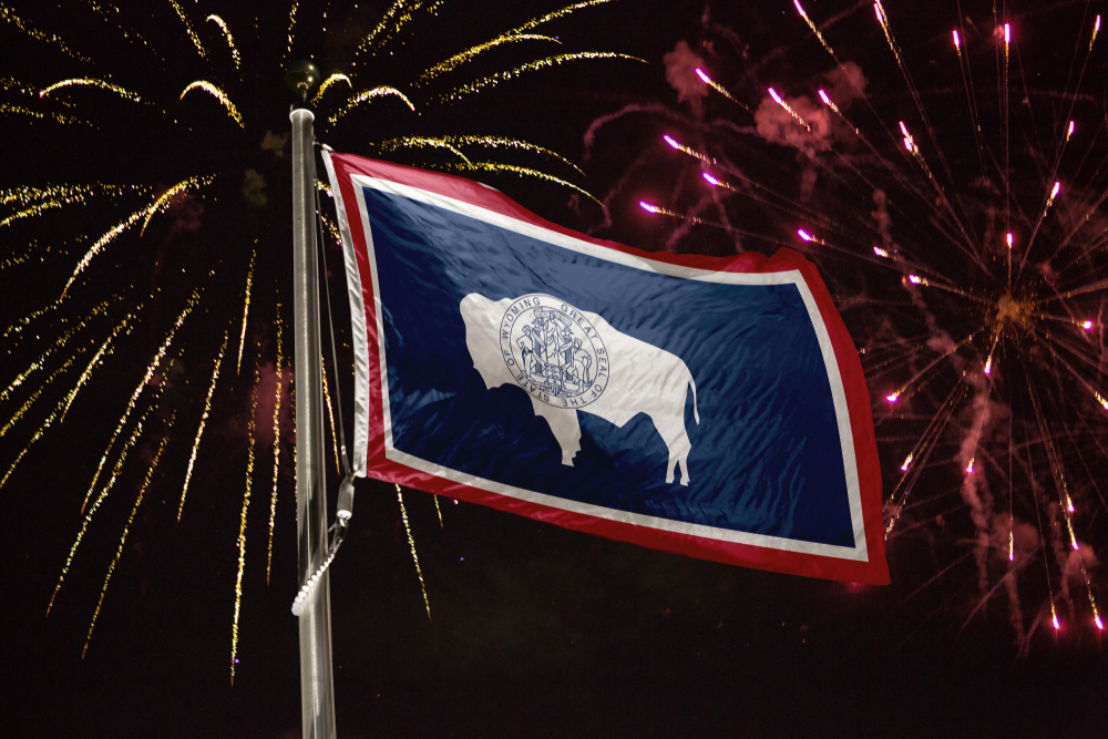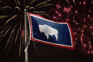 Wyoming flag with fireworks